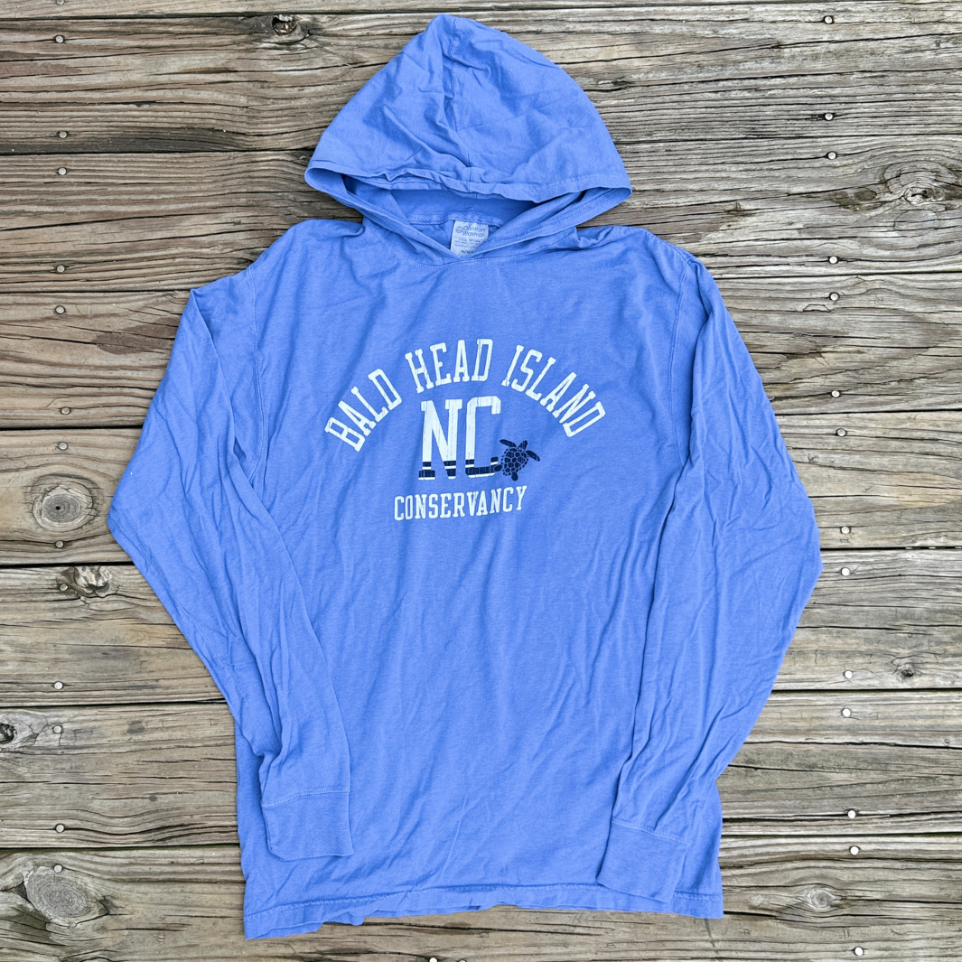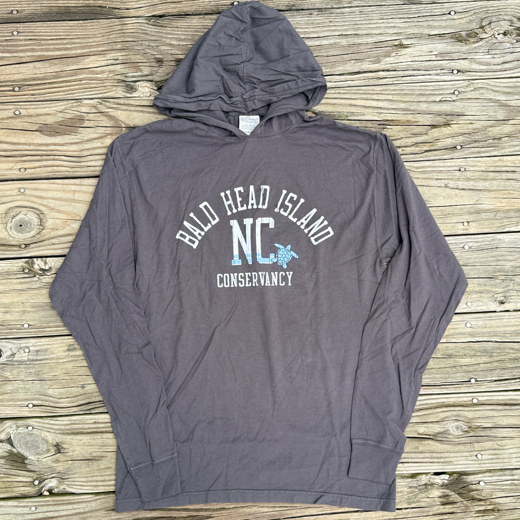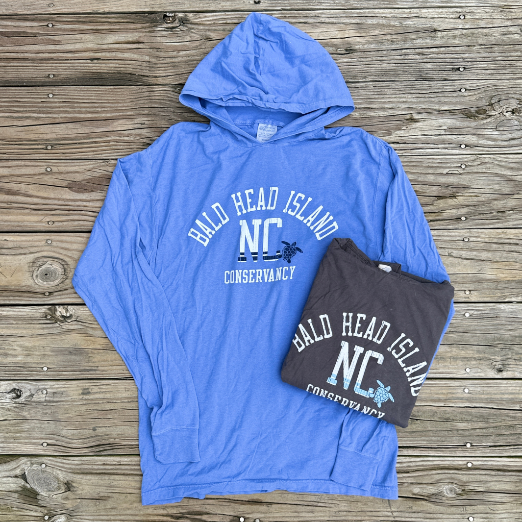 Show your love for Bald Head Island and its coastal wildlife with our BHI Conservancy Sea Turtle Hooded Love Sleeve T-Shirt. Lightweight and ultra-soft, this versatile hood is perfect for breezy beach mornings, cool ferry rides, or laid-back evenings on the porch.