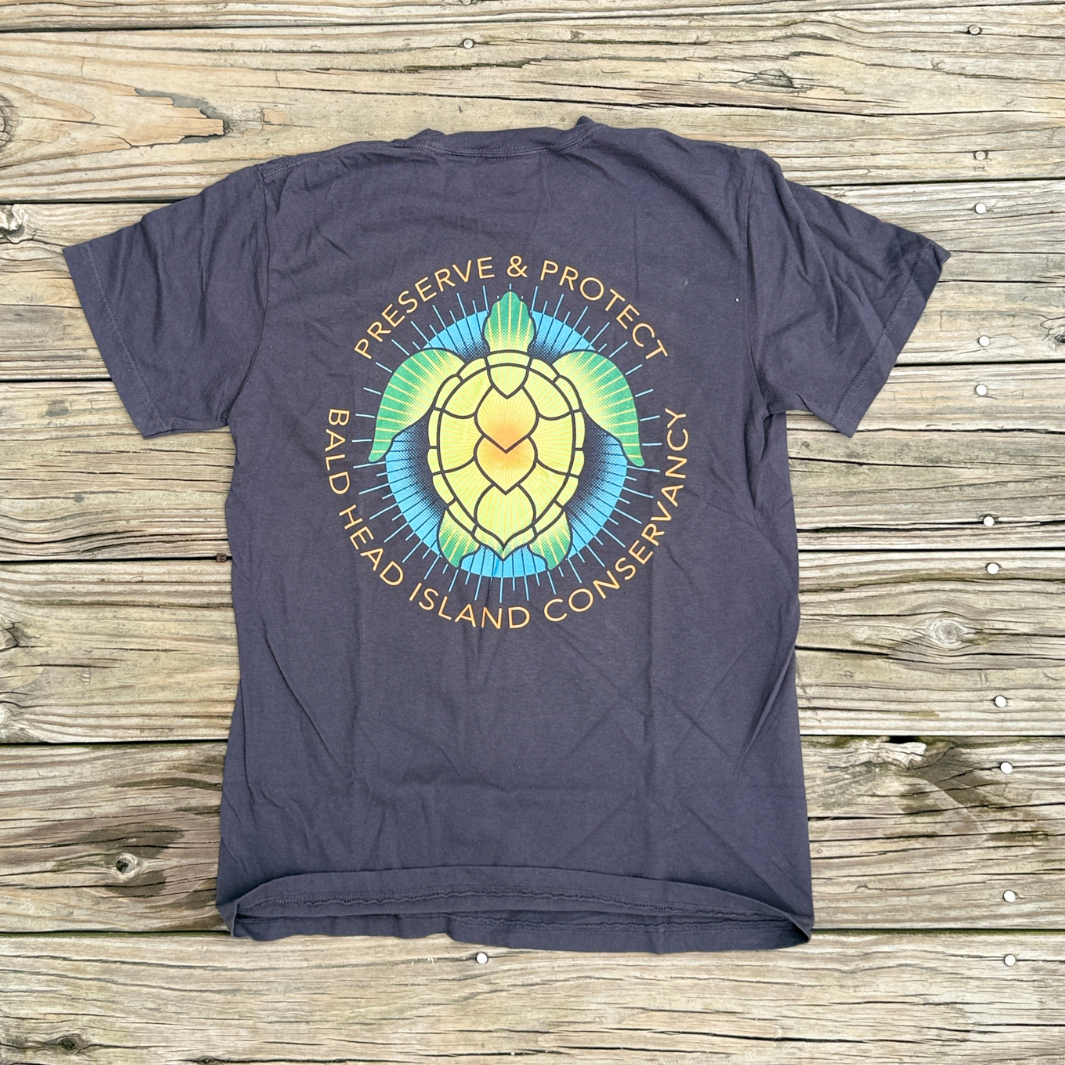 Regular price $30.98Celebrate your love for coastal wildlife with the Preserve & Protect Sea Turtle T-Shirt--a meaningful and stylish tribute to Bald Head Island's conservation mission. Featuring a vibrant sea turtle design on the back surrounded by the words, "Preserve & Protect - Bald Head Island Conservancy," this shirt captures the spirit of protecting the island's most beloved residents.